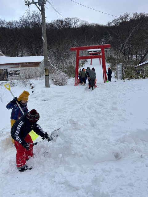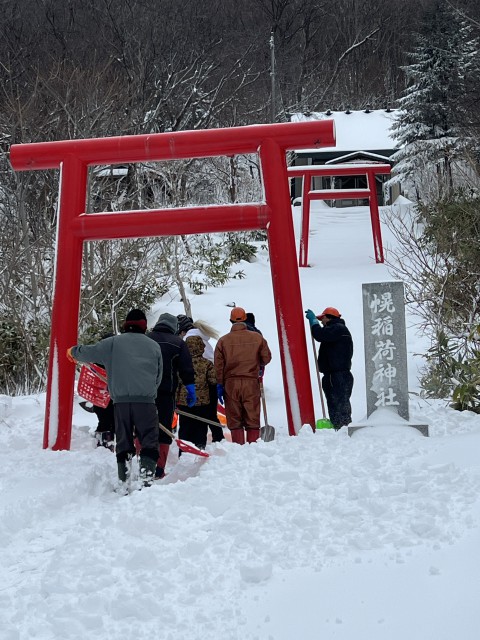 幌の神社は、真っ直ぐ商店街を眺める位置に